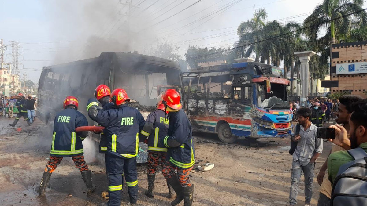 সাভারের আশুলিয়ায় বাসচাপায় মেহেদী হাসান (২২) নামে এক মোটরসাইকেল আরোহী নিহত হয়েছেন। এ ঘটনায় বিক্ষুব্ধ জনতা আলীনুর পরিবহন নামে দুটি বাসে আগুন ধরিয়ে দিয়েছে। খবর পেয়ে আশুলিয়ার জিরাবো ফায়ার সার্ভিসের দুটি ইউনিট ঘটনাস্থলে পৌঁছে আগুন নিয়ন্ত্রণে আনে।