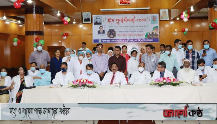 এর আগে সকাল সাড়ে ৯টা থেকে ১০টা পর্যন্ত সৌহার্দ্য, সম্প্রীতি ও শুভেচ্ছা বিনিময়ের মাধ্যমে বঙ্গবন্ধু শেখ মুজিব মেডিকেল বিশ্ববিদ্যালয়ে ঈদ পুনর্মিলনী-২০২২ অনুষ্ঠিত হয়। উপাচার্য অধ্যাপক ডা. মো. শারফুদ্দিন আহমেদ বিশ্ববিদ্যালয়ের শিক্ষক, শিক্ষার্থী, চিকিৎসক, কর্মকর্তা, নার্স, মেডিকেল টেকনোলজিস্ট ও কর্মচারীদের সঙ্গে শুভেচ্ছা বিনিময় করেন।