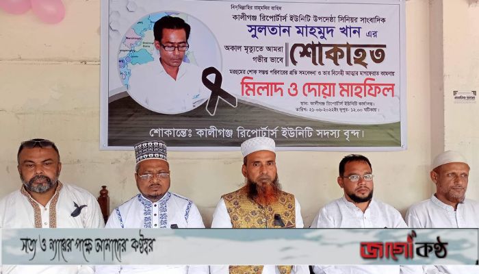 কালীগঞ্জে সাংবাদিক সুলতান মাহমুদ খানের রুহের মাগফেরাত কামনায় দোয়া মাহফিল অনুষ্ঠিত