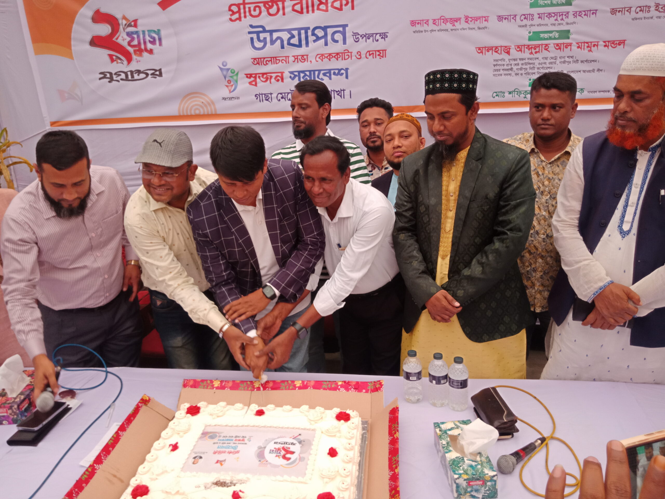 ব্যপক উৎসাহ উদ্দীপনার মধ্য দিয়ে যুগান্তরের প্রতিষ্ঠাবার্ষিকী উদযাপন করা হয়েছে। যুগান্তরের ২ যুগে পর্দাপণ উপলক্ষে শনিবার বিকালে স্বজন সমাবেশ গাছা মেট্রো থানা শাখার উদ্যোগে বর্ণাঢ্য র্যালী, আলোচনা সভা, কেককাটা ও দোয়া অনুষ্ঠিত হয়েছে। সাবেক গাছা ইউপি চত্বরে অনুষ্ঠিত আলোচনা সভায় স্বজন সমাবেশ গাছা থানা শাখার সভাপতি ৩৫ নম্বর ওয়ার্ড কাউন্সিলর আব্দুল্লাহ আল মামুন মন্ডলের সভাপতিত্বে ও সাধারণ সম্পাদক শফিকুল ইসলাম শফিকের সঞ্চালনায় প্রধান অতিথি হিসাবে উপস্থিত ছিলেন গাছা থানার অফিসার ইনচার্জ মো. ইব্রাহিম হোসেন। বিশেষ অতিথি হিসাবে উপস্থিত ছিলেন যুগান্তর স্বজন সমাবেশ টঙ্গী শাখার সভাপতি অলিদুর রহমান অলি, মহানগর ছাত্রলীগের সাবেক সাধারণ সম্পাদক তৌহিদুল ইসলাম দীপ। অনুষ্ঠানের উদ্বোধক ছিলেন যুগান্তর গাছা প্রতিনিধি এমআর নাসির। আলোচনার সভার শুরুতে যুগান্তরের স্বপ্নদ্রষ্টা বীরমুক্তিযোদ্ধা নুরুল ইসলামের স্বরণে দাঁড়িয়ে ১ মিনিট নীরবতা পালন করা হয়। পরে আলোচনায় অংশ নিয়ে বক্তব্য দেন, মো. বাবুল হোসেন মন্ডল, আব্দুল হালিম খান, হুমায়ূন সরকার, শহিদুল ইসলাম শহিদ মন্ডল, এস এম ইউসুফ, আবু রায়হান খন্দকার বাবু, গাছা প্রেস ক্লাবের সভাপতি মো. কামাল উদ্দিন, সাধারণ সম্পাদক আব্দুল হামিদ খান, সাংবাদিক মো. জাহাঙ্গীর আলম, আশরাফুল আলম মন্ডল, জুম্মন খান, রাজু, টুটুল প্রমূখ। বক্তারা বলেন, দৈনিক যুগান্তরের স্বপ্নদ্রষ্টা ও যমুনা গ্রুপের চেয়ারম্যান বীরমুক্তিযোদ্ধা নুরুল ইসলাম ছিলেন একজন দূরদর্শী মানুষ। তিনি দেশের সাধারণ মানুষের কথা চিন্তা করে, বহু শিল্প কারখানা গড়ে তুলেন। সে সব কারখানায় লাখ লাখ মানুষের কর্মসংস্থানের সুযোগ সৃষ্টি করে দিয়েছেন। দেশের গণতন্ত্র প্রতিষ্ঠা ও দূর্ণীতি অনিয়মের তথ্য তুলে ধরে যুগান্তর। জনগণের অধিকারের কথা বলে, সমাজের অন্যায়, অবিচার ও নিষ্পেষিত পাশে থাকে। যুগান্তর দেশের উন্নয়ন ও ন্যায় প্রতিষ্ঠার জন্য দেশের সংবাদ পাঠকের মনে জায়গা করে নিয়েছে। দেশের ১৭ কোটি মানুষের স্পন্দন হয়ে উঠেছে দৈনিক যুগান্তর। বক্তারা আরো বলেন, দৈনিক যুগান্তর ঝুঁকি নিয়ে বস্তুনিষ্ঠ ও সত্য সংবাদ প্রচারে কখনো পিছিয়ে থাকেনি। যুগান্তরের এগিয়ে যাওয়া অব্যাহত থাকুক এ প্রত্যাশা করেন। আলোচনা শেষে বীরমুক্তিযোদ্ধা নুরুল ইসলাম এর রূহের মাগফিরাত কামনায় দোয়া করা হয়। পরে অতিথিরা কেককেটে যুগান্তরের প্রতিষ্ঠাবার্ষিকী উদযাপন ও উপস্থিত সকলের মাঝে মিষ্টি বিতরণ করা হয়।