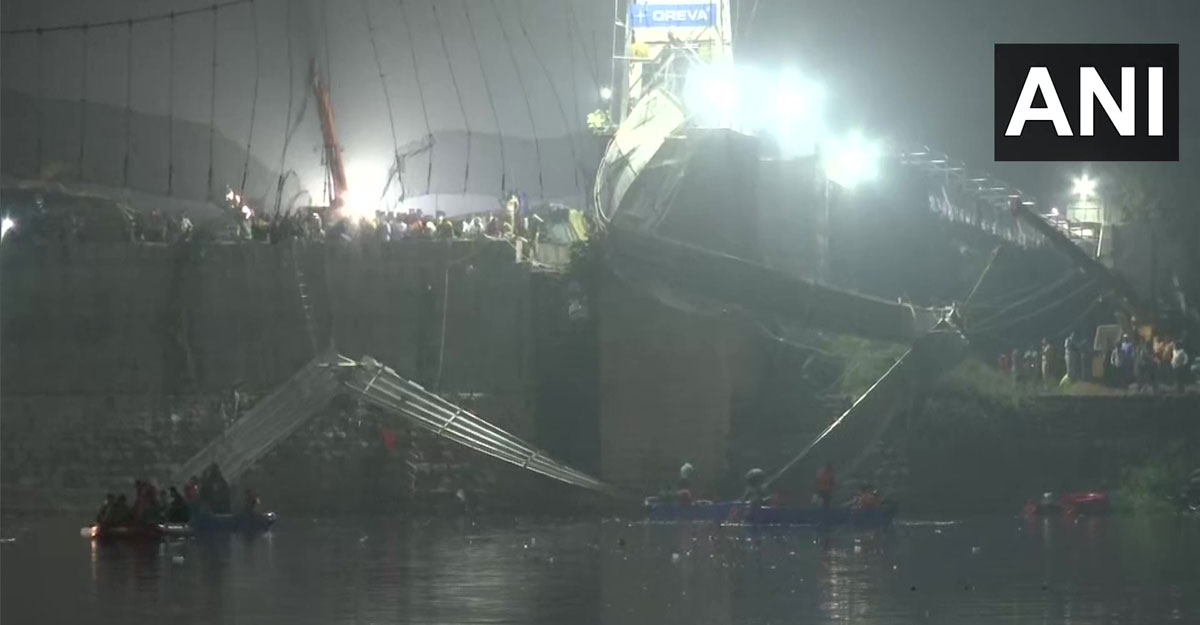 সংবাদমাধ্যম বলছে, গুজরাটের মোরবি জেলার মাচ্ছু নদীতে প্রায় দেড়শ বছরের পুরোনো ঐতিহাসিক ওই ঝুলন্ত সেতু রোববার ভেঙে পড়ে। মেরামতের পর চারদিন আগে এই সেতুটি পুনরায় খুলে দেওয়া হয়। ভেঙে পড়ার সময় পাঁচ শতাধিক মানুষ সেতুতে ছিলেন।