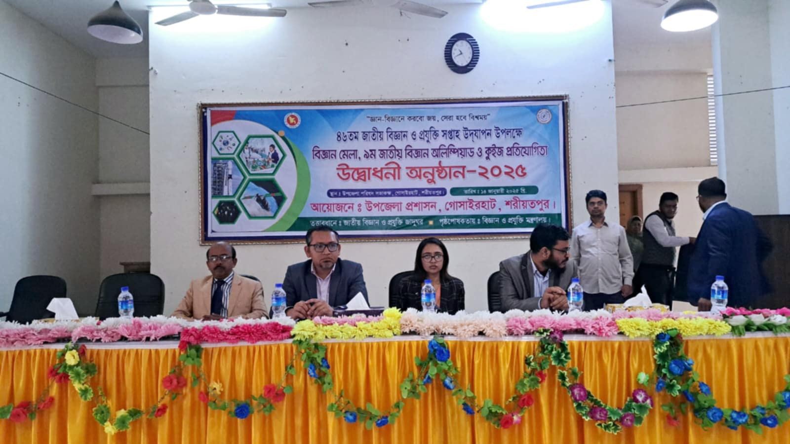 বুধবার সকাল১০টা সময় শরীয়তপুর গোসাইরহাট উপজেলা পরিষদ হলরুম চত্বরে ৪৬ তম জাতীয় বিজ্ঞান ও প্রযুক্তি সপ্তাহ উপলক্ষে ২ দিনব্যাপী বিজ্ঞান মেলার শুভ উদ্বোধন করেন গোসাইরহাট উপজেলা নির্বাহী অফিসার আহমেদ সাব্বির সাজ্জাদ।