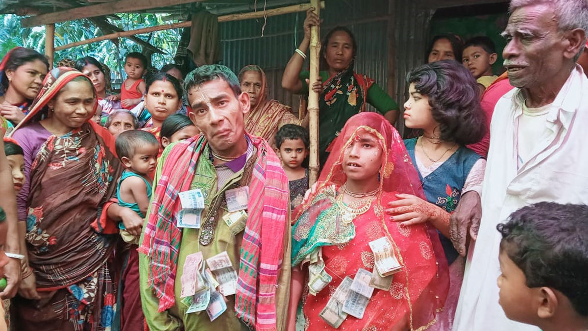 বর ওই এলাকার বিরেন রায়ের ছেলে মনেশ্বর রায় (২৫)। কনে পার্শ্ববর্তী লালমনিরহাট জেলার আদিতমারী এলাকার সাবিত্রী রায় (১৯)। বর প্রতিবন্ধী ভাতা পান বলে জানা গেছে।