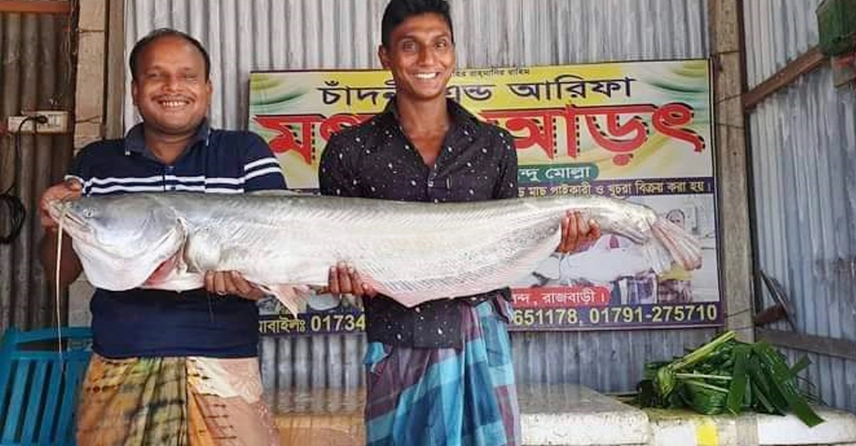 শুক্রবার (২ সেপ্টেম্বর) সকাল ৮টার দিকে দৌলতদিয়া ঘাটের অদূরে পাবনার জেলে আনন্দ হালদারের জালে মাছটি ধরা পড়ে। মাছটি পরে ২০ হাজার টাকায় বিক্রি করা হয়।