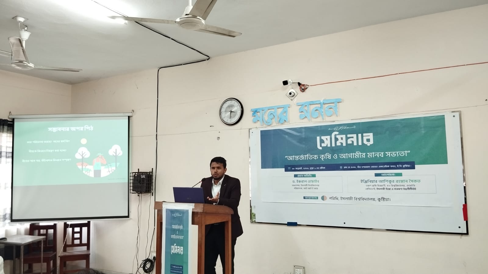 এতে বিশ্ববিদ্যালয়ের একাউন্টিং অ্যান্ড ইনফরমেশন সিস্টেম এর শিক্ষার্থী আহমাদ গালিবের সঞ্চালনায় সেমিনারের প্রধান আলোচক ছিলেন তরুন কৃষি বিজ্ঞানী এবং ইসলামী চিন্তা ও গবেষণা ইনস্টিটিউট এর সভাপতি ইঞ্জিনিয়ার আশিকুর রহমান।