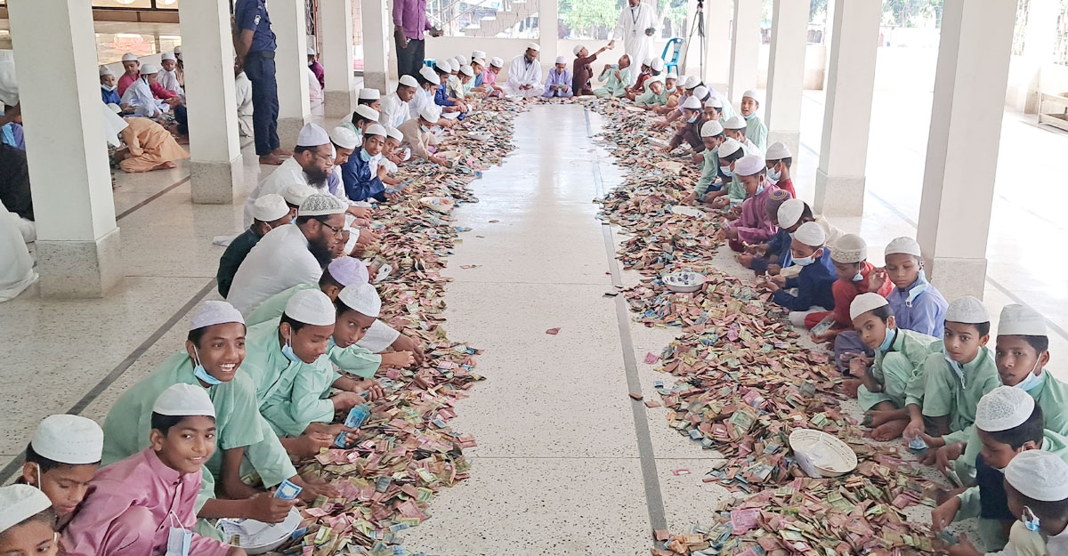 মসজিদ পরিচালনা কমিটি সূত্রে জানা গেছে, আজ সকাল ৮টায় জেলা প্রশাসনের দায়িত্বপ্রাপ্ত কর্মকর্তাদের উপস্থিতিতে মসজিদের আটটি দান সিন্দুক খোলা হয়েছে। দান সিন্দুকগুলো খুলে ১৬টি বস্তায় টাকাগুলো আনা হয়েছে গণনার জন্য। এখন চলছে টাকা গণনার কাজ।
