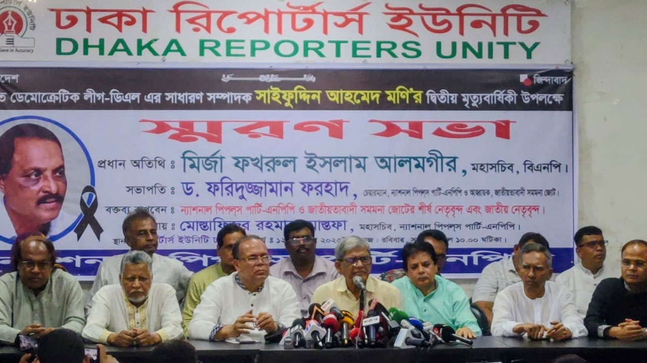 রোববার (১২ অক্টোবর) দুপুরে ঢাকা রিপোর্টার্স ইউনিটি কার্যালয়ের মিলনায়তনে এক আলোচনা সভায় এ কথা তিনি। ন্যাশনাল পিপলস পার্টির উদ্যোগে ডেমোক্র্যাটিক লীগের সাধারণ সম্পাদক সাইফুদ্দিন আহমেদ মনির দ্বিতীয় মৃত্যুবার্ষিকী উপলক্ষ্যে এ আলোচনা সভা হয়।