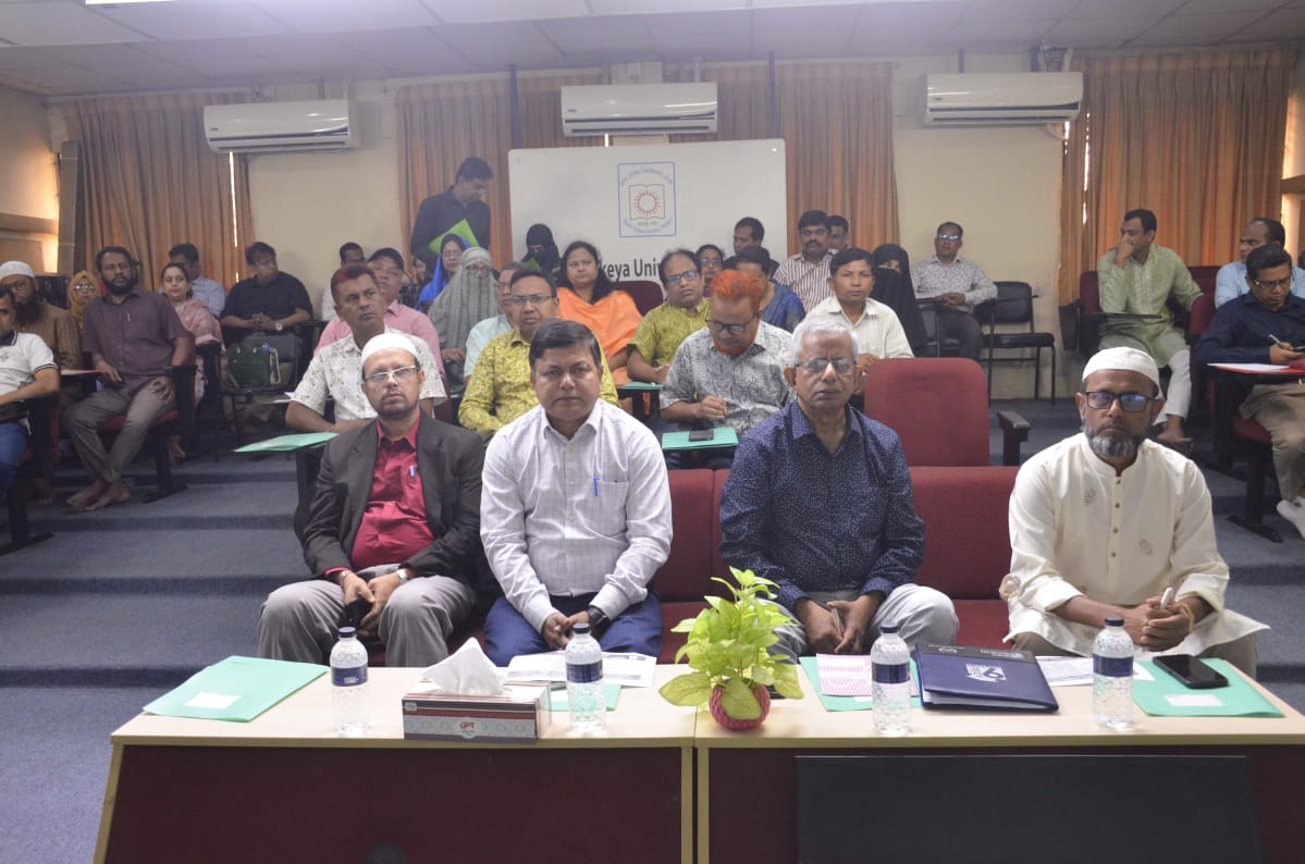 বেগম রোকেয়া বিশ্ববিদ্যালয়, রংপুরে কর্মরত কর্মকর্তাদের জন্য ইন্সটিটিউশনাল কোয়ালিটি অ্যাসিউরেন্স সেল (আইকিউএসি) আয়োজিত ‘অফিস ম্যানেজমেন্ট’ শীর্ষক কর্মশালা অনুষ্ঠিত হয়েছে। আজ রবিবার (১৩ এপ্রিল, ২০২৫) সকালে একাডেমিক ভবন-২ এর ভার্চুয়াল ক্লাসরুমে অনুষ্ঠিত কর্মশালায় প্রধান অতিথি হিসেবে বক্তব্য রাখেন বিশ্ববিদ্যালয়ের উপাচার্য প্রফেসর ড. মোঃ শওকাত আলী। তিনি বলেন, বিশ্ববিদ্যালয়কে এগিয়ে নেওয়ার ক্ষেত্রে এই কর্মশালা গুরুত্বপূর্ণ ভূমিকা পালন করবে। তিনি আরও বলেন, অভিজ্ঞতা ও দক্ষতা অর্জনের মাধ্যমে কর্মকর্তাদের মাঝে যে পরিবর্তন আসবে, তার মাধ্যমে বিশ্ববিদ্যালয়েরও ইতিবাচক পরিবর্তন আসবে।