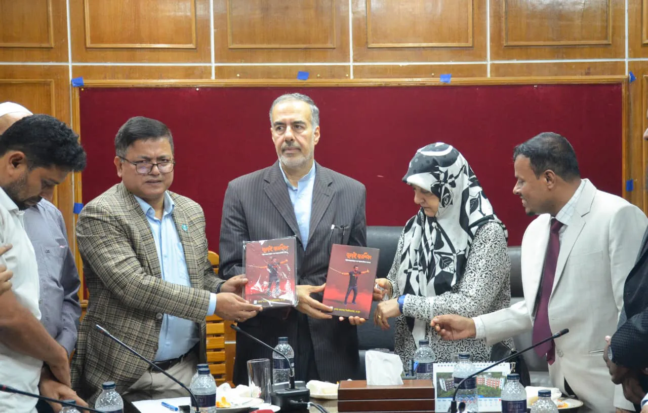 বেগম রোকেয়া বিশ্ববিদ্যালয়, রংপুরের উপাচার্য প্রফেসর ড. মোঃ শওকাত আলীর সঙ্গে বাংলাদেশের ঢাকায় নিযুক্ত ইরানের রাষ্ট্রদূত মনসুর চাভোশি সৌজন্য সাক্ষাৎ ও মতবিনিময় করেছেন। আজ বৃহস্পতিবার (১৬, অক্টোবর, ২০২৫) সকালে প্রশাসনিক ভবনের সিন্ডিকেট রুমে আয়োজিত এ সৌজন্য সাক্ষাৎ অনুষ্ঠানে দুই দেশের উচ্চশিক্ষা ও গবেষণা ক্ষেত্রে পারস্পারিক সহযোগিতার বিষয়ে আলোচনা হয়েছে।