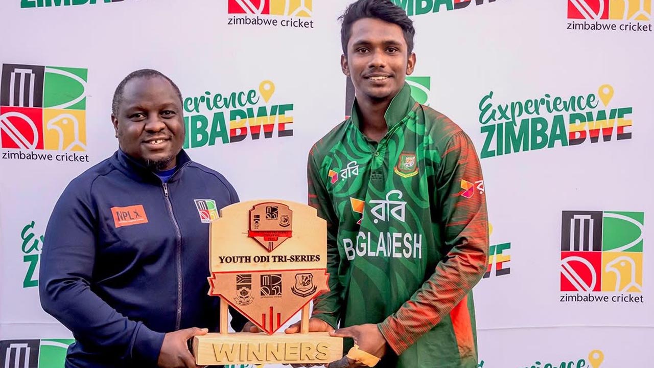 জিম্বাবুয়ের মাটিতে ত্রিদেশীয় সিরিজ জিতে দেশে ফিরেছে বাংলাদেশ অনূর্ধ্ব-১৯ ক্রিকেট দল। শুরুতে দক্ষিণ আফ্রিকায় ওয়ানডে সিরিজ জিতেছিল যুবা টাইগাররা। এরপর ত্রিদেশীয় সিরিজে চ্যাম্পিয়ন হয় আজিজুল হাকিম তামিমের দল।