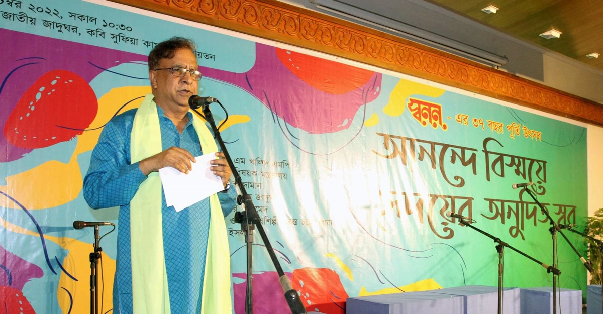 শনিবার (১৭ সেপ্টেম্বর) জাতীয় জাদুঘরের কবি সুফিয়া কামাল মিলনায়তনে ‘আনন্দে বিস্ময়ে হৃদয়ের অনুদিত স্বর’ শিরোনামে আবৃত্তি সংগঠন ‘স্বনন’ এর ৩৭ বছর পূর্তি উৎসব অনুষ্ঠানে তিনি এ কথা বলেন।