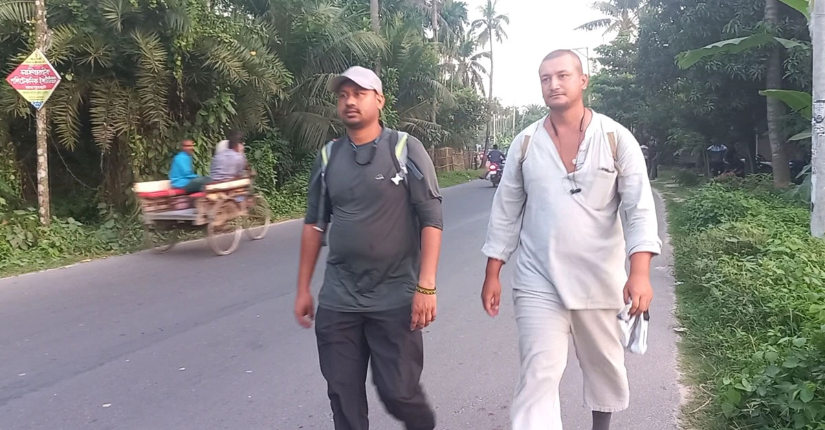 বলছিলাম হেঁটে চার দেশ ভ্রমণে বের হওয়া ২৭ বছর বয়সী নেপালি এক যুবকের কথা। তার নাম ‘ইহ (iih)’। নাম জানতে চাইলে এই ছোট নামটির কথায় তিনি বলেছেন। ইহ তার নিজ দেশ নেপাল থেকে শ্রীলঙ্কা, ভারত হয়ে বাংলাদেশে এসেছেন। নেপালি এই তরুণ বাংলাদেশের টেকনাফ থেকে তেতুঁলিয়া পর্যন্ত হাঁটবেন। ইতোমধ্যে তিনি জয়পুরহাট জেলা ভ্রমণ করেছেন।